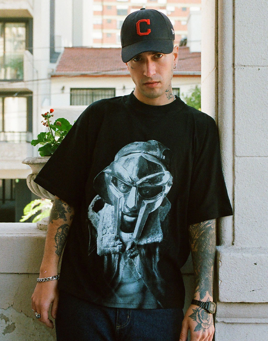 Remera de MF DOOM, el supervillano más temido del rap. Con un estilo único mezcló misterio, ingenio y una producción que parecía sacada de otro planeta. Cada verso es una pieza de un rompecabezas complejo, que solo podes encastrar escuchandolo.
